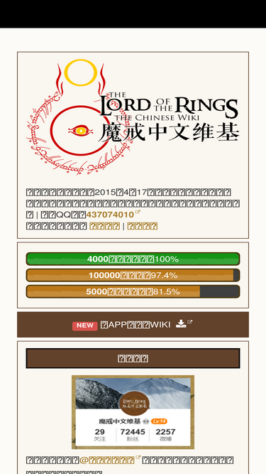 74%托尔金的奇幻世界的中文百科。魔戒中文维基由托尔金粉丝共同编写,整理托尔金的奇幻世界相关的一切,任何人都可以参与编辑。