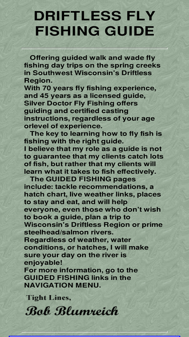 48%a volunteer driven web page focused on trout fishing in the state of wisconsin. offering current water condtitions, fishing reports and emergance calendars for may flies, stone flies and caddis flies