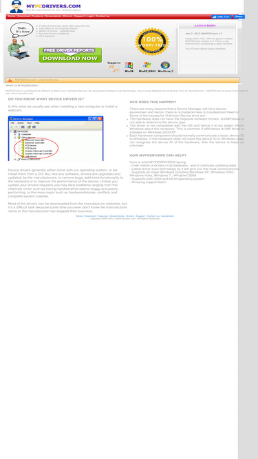90%mypcdrivers uses a unique scan technology to detect your hardware devices, provide you the download link. it supports windows xp, windows 2003, win vista, windows 7 , both 32bits and 64 bits version