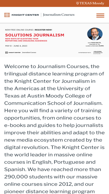 86%What do you think of the Knight Center? Help us continue to serve journalists by taking this brief survey.<span style="padding-right:20px;" TAKE SURVEY! × About Us The Knight Center is the world leader in massive online courses on journalism. Welcome to Journalism Courses, the Knight Center for Journalism in the Americas’ trilingual distance learning program at […]