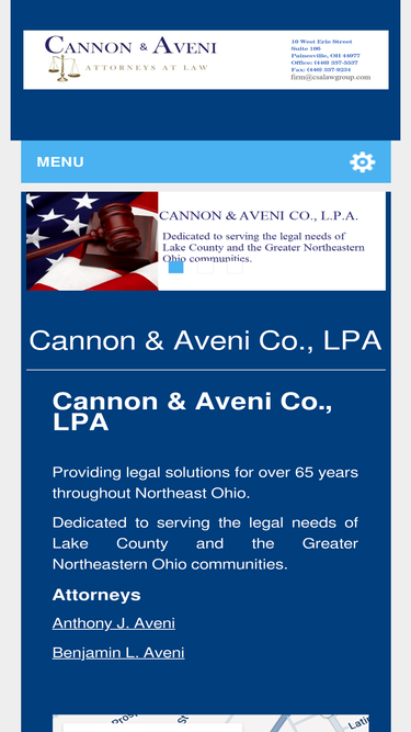 100%cannon & aveni co., l.p.a. is a northeast ohio law firm specializing in areas of practice such as business law, criminal, law/defense, custody, domestic relations, divorce/dissolutions, dui/dus/ovi, employment law, estate planning, family law, juvenile law, mediation/arbitration, motor vehicle accidents, municipal law, personal injuries, probate law, real estate law, trusts, wills