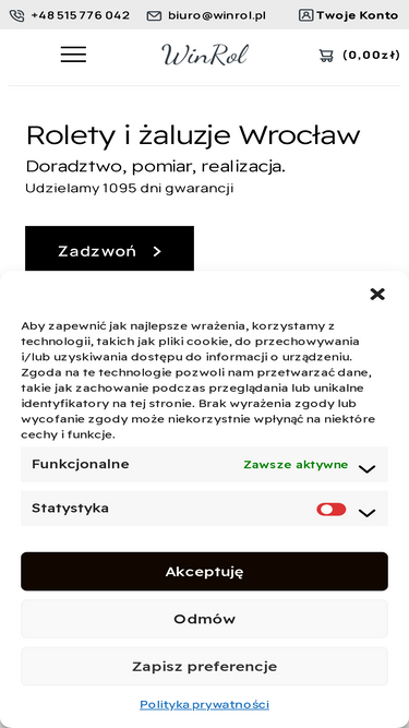 98%Rolety i żaluzje, markizy i pergole. Wejdź i skontaktuj się. Doradzimy, pomożemy wybrać i zamontujemy. Zapewniamy serwis na gwarancji i po gwarancji.