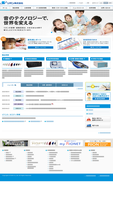 音のテクノロジーで世界を変えるーリオネット補聴器,聴能設備機器,医用検査機器,音響・振動計測器,微粒子計測器など、さまざまな分野で暮らしとビジネスを支えている、リオン株式会社のウェブサイトです。
