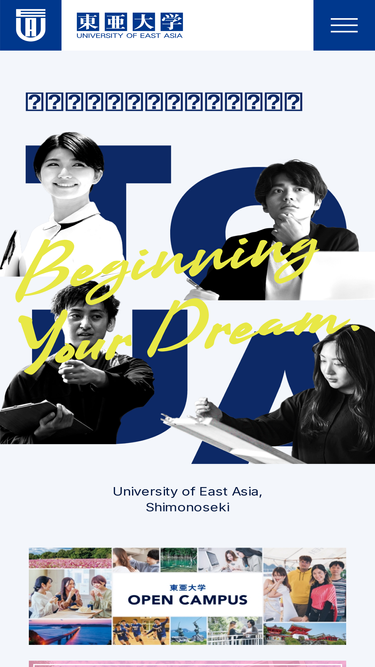66%東亜大学から、夢のはじまり。未来を動かす一歩をはじめよう。ひとと出会い、心を揺さぶる刺激が交差する、キミが輝くステージがここに。一人ひとりのスタイルで、新しい一歩を踏みだそう。