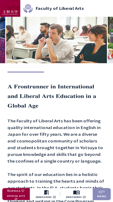 62%Information of the FLA's professors. Sophia University (Jochi Daigaku) is the oldest Catholic university in Japan, located in the heart of Tokyo. Its educational spirit is "For Others, With Others".