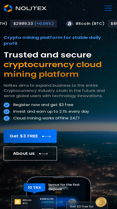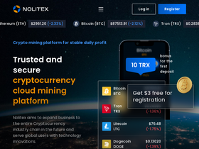 83%Nolitex is a mining platform for mining Bitcoin (BTC), TRON (TRX), Litecoin (LTC), Dogecoin (DOGE), which is fast and secure to use.