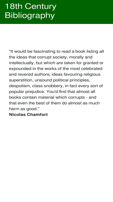 100%18th century bibliography is a listing of texts that appeared between 1680 and 1810. texts can be browsed by decade and author.