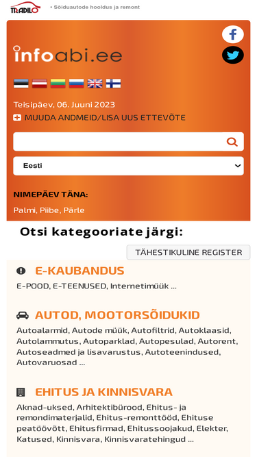 Die weiteren fünf Wettbewerber in der Top-10-Liste sind teenus.info, kontakt.ee, 1182.ee, turismiweb.ee und .