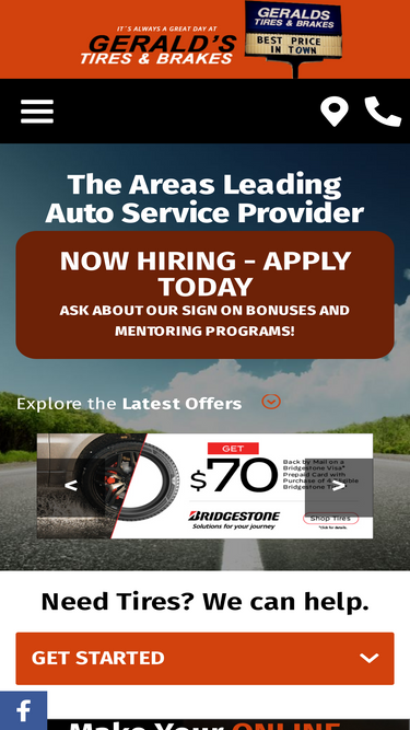 Quality products from Michelin®, BFGoodrich®, and Uniroyal® and great service sets Gerald's Tire & Brakes apart from the rest. Our service department specializes in brakes, alignment, and oil changes for customers just like you.