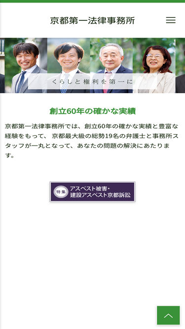 98%京都第一法律事務所では、創立60年の確かな実績と豊富な経験をもって、若手・中堅・ベテラン総勢20名の弁護士と事務所スタッフが一丸となって、あなたの問題の解決にあたります。まずはお気軽にご相談ください。