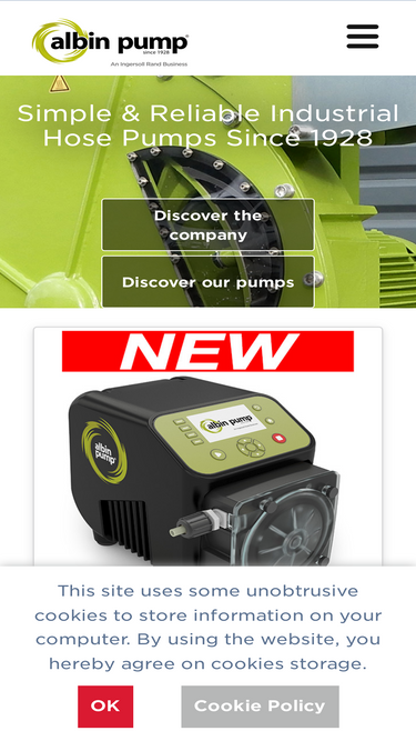 71%Albin Pump is a leading manufacturer of industrial peristaltic pumps, hose pumps and tube pumps, and a brand of Ingersoll Rand.