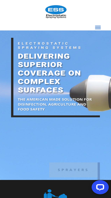 Electrostatic Spraying Systems, Inc.(“ESS”), of Watkinsville, Georgia has been in the business of manufacturing electrostatic sprayers utilizing its patented and proprietary technologies for over 30 years. Today, customers in over 60 countries worldwide enjoy the benefits of applying a variety of water-based disinfectants, food safety solutions and agriculture chemicals electrostatically.