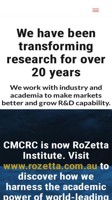 79%CMCRC is now RoZetta Institute. Visit www.rozetta.com.au to discover how we harness the research power of world-leading universities to solve industry problems and save lives.