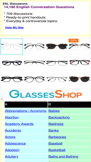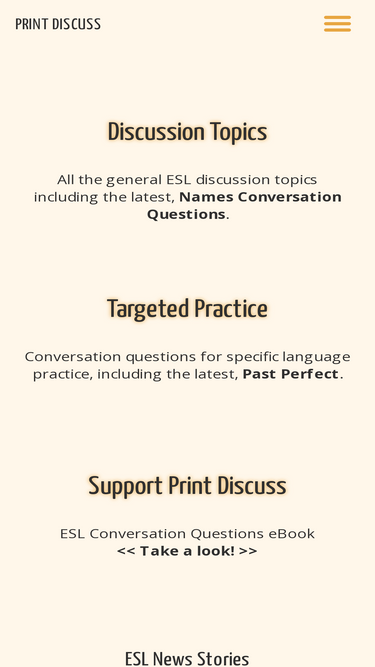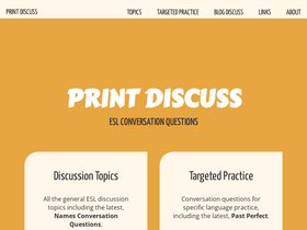 97%ESL Discussions: 14,180 English conversation questions and 709 ready-to-print discussion handouts.