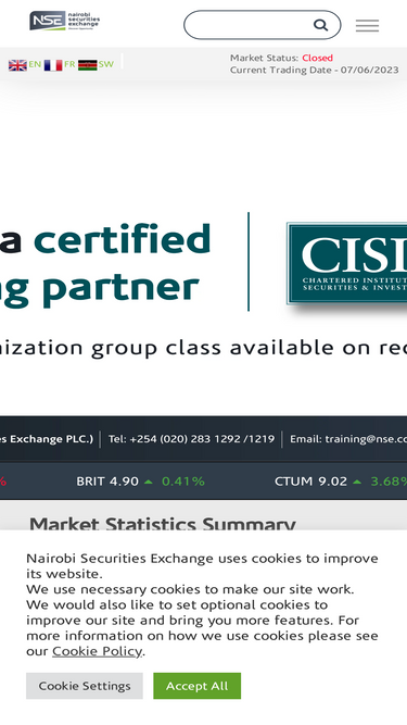 79%The Nairobi Securities Exchange (NSE) is a leading African Exchange, based in Kenya – one of the fastest-growing economies in Sub-Saharan Africa. Founded in 1954, NSE has a six decade heritage in listing equity and debt securities.