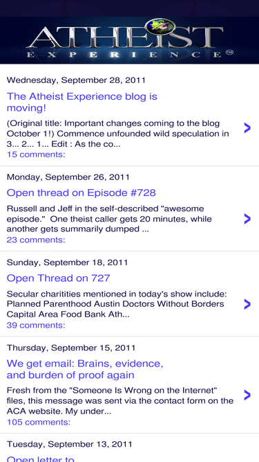 87%PLEASE NOTE: The Atheist Experience has moved to a new location, and this blog is now closed to comments. To participate in future discussions, please visit http://www.freethoughtblogs.com/axp. The Atheist Experience is a weekly live call-in television show sponsored by the Atheist Community of Austin. This independently-run blog (not sponsored by the ACA) features contributions from current and former hosts and co-hosts of the show.
