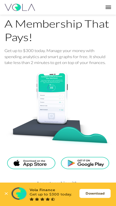81%vola finance - a membership that pays! get instant access to advances up to $300 today. avoid overdraft fees, manage your money smartly, and build your credit score with vola. start for free today.