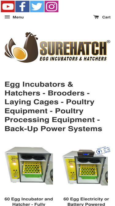 83%Introducing our Dual Powered (220V Electricity or 12V Battery) 680 egg incubator! Don't risk losing eggs due to getting cold from power outages! Keep your incubator on during power outages and load shedding. This is the ideal solution for breeders who live in areas where power goes off for 2 to 6 hours at a time. While the electricity is on the incubator automatically charges the battery. As soon as the electricity goes off then the incubator gets it's power from the battery. The incubator does this automatically - no need to go and start a generator! Think of it as almost like a cellphone - once you charge the battery full you can use it while the electricity is off until the battery dies. The Surehatch SH680DP is our smallest fully automatic digital egg incubator and hatcher. Setting Capacity: Chicken/Duck/Guinea Fowl Eggs: 480 orQuail Eggs: 1040Hatching Capacity:Chicken/Duck/Guinea Fowl Eggs: 200 orQuail Eggs: 520 You can hatch up to 640 chicks per month when loading 180 egg per week in the SH680 Egg Incubator (More info on weekly loading and hatching) Years of research and experience has led us to the SH60 MiniHatch fully automatic digital egg incubator and hatcher. This is the ideal egg incubator for someone who wants to incubate eggs on a smaller scale. It is easy to use, fully-automatic and requires no special skills to operate. Temperature is automatically regulated by the digital heat controller. It's the ideal incubator to start with! Product Description:The SH680DP 12V/220V Egg Incubator Hatcher has the following features Fully Digital Incubation Temperature Control Digital Incubation Temperature and Humidity Display Automatic Egg Turning Egg trays for chickens (Quail trays cost extra) Extra Large ClearView Observation Window Egg Incubator made of Ultra Durable Materials Opti-Flow™ Specialized High Volume Incubator Fan Maxi-Heat™ Energy Saving Incubator Heating System Full Incubation Instructions Included 3 Year Warrantee Made in South Africa 100Ah