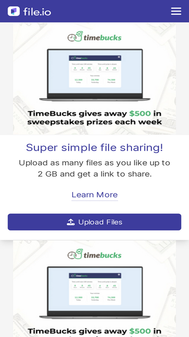 82%Sharing files with file.io is convenient, anonymous and secure. Just upload files and share the links via email, SMS, Slack, Discord, etc. Easy-to-use REST API.