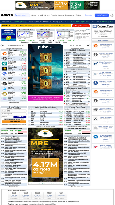 84%free stock and cryptocurrency quotes, message boards, fundamentals. markets include nasdaq, nyse, otcbb, pink sheet, cryptocurrency and world exchanges. use advanced charts, level2, read market news and sec filings.