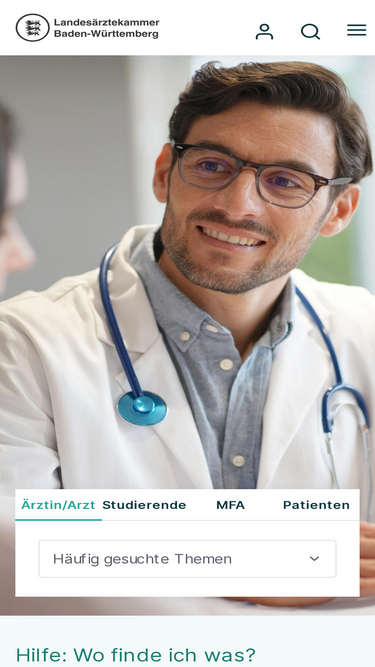 Herzlich Willkommen auf unserer Website. Informieren Sie sich über unsere Angebote für Ärztinnen und Ärzte, Medizinstudierende, Medzinische Fachangestellte, Bürger sowie Patientinnen und Patienten.
