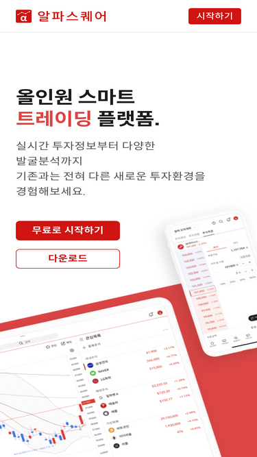 투자에 필요한 모든 것을 기기의 제약없이 단 한 곳에서 이용 가능! 차세대 트레이딩 플랫폼 알파스퀘어. 실시간 투자정보부터 다양한 발굴분석까지 기존과는 전혀 다른 새로운 투자환경을 경험해 보세요.