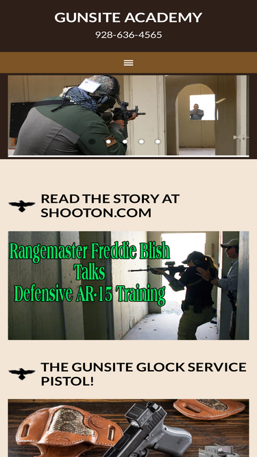 100%Gunsite is such a school. Here, we teach Marksmanship – how to hit what you aim at. However, Gunsite goes beyond this simple discipline to include the principles of Gun-handling and Mind-set. This we call the Combat Triad. We offer multiple levels of instruction in handgun, carbine, shotgun, bolt action rifle and precision rifle. Each discipline is informed by the Combat Triad. Each Instructor at Gunsite is someone who has served in Law Enforcement, the military or both. Each Instructor is fully imbued with the doctrine and tradition of our school.