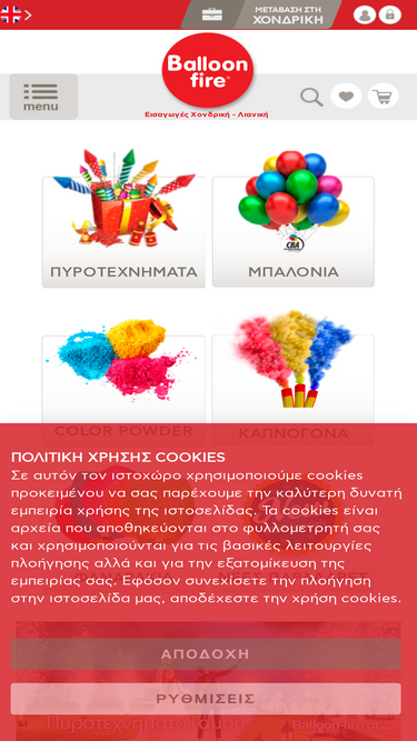 100%Βρείτε από τις εισαγωγές μας και αγοράστε χονδρικής ή λιανικής τα πυροτεχνήματα. E-shop Πανελλαδικά το φτηνότερο με πιστοποίηση ποιότητας ISO9001.