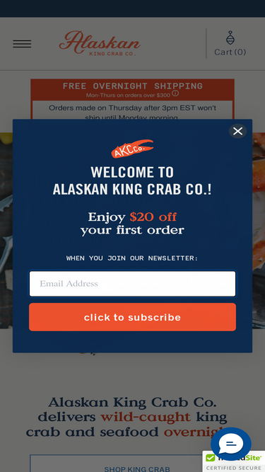 FREE SHIPPING. When you order the largest and most impressive of all crabs caught in the world, Alaskan King Crab, you’ll taste the unmatched flavor, quality, and texture. Get FREE OVERNIGHT SHIPPING on All King Crab Orders Now!