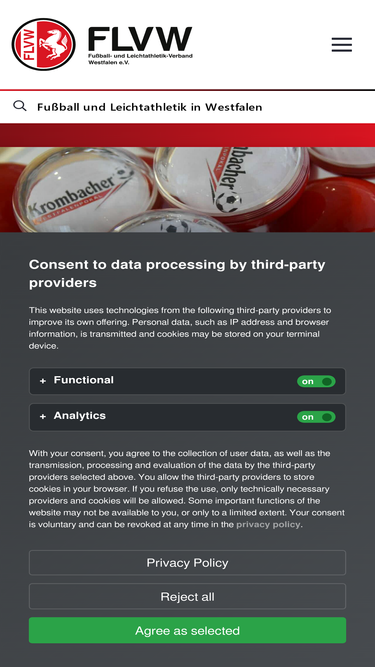 92%Herzlich willkommen beim Fußball- und Leichtathletik-Verband Westfalen (FLVW)!