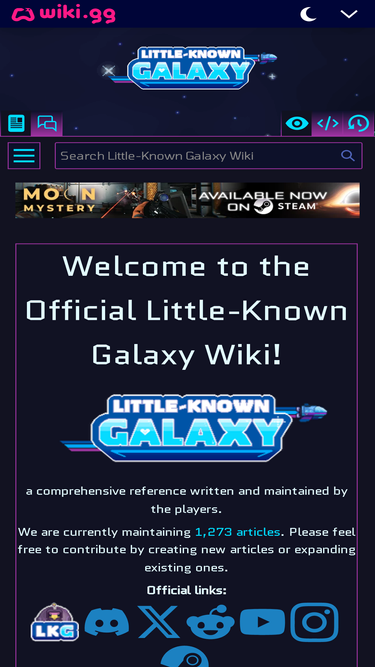 80%Welcome to the Little-Known Galaxy Wiki, a collaborative wiki resource that is open for anyone to edit!