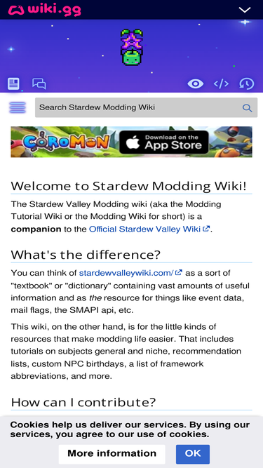 78%The Stardew Valley Modding wiki (aka the Modding Tutorial Wiki or the Modding Wiki for short) is a companion to the Official Stardew Valley Wiki. You can think of stardewvalleywiki.com/ as a sort of "textbook" or "dictionary" containing vast amounts of useful information and as the resource for things...