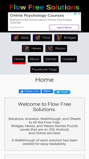 Flow Free Solutions is the Source for Solutions and Answers to All the Flow, Bridges, Hexes, and Warps Games Puzzle Levels that are on iOS, Android, Windows, and Web