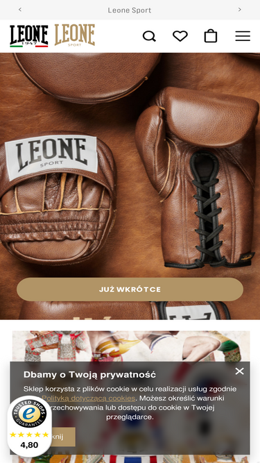 80%Leone 1947 – włoska marka premium. Rękawice bokserskie, MMA i kickboxing, odzież sportowa i akcesoria. Darmowa dostawa od 70 zł.