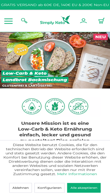 Simply Keto ist dein Online-Shop für ketogenen Lifestyle. Entdecke eine große Auswahl an kohlenhydratarmen Lebensmitteln, inspirierende Rezepte und hochwertige Produkte. Starte deine Reise zu einem gesunden Lifestyle mit keto-freundlichen Snacks, Backmischungen und vielem mehr.
