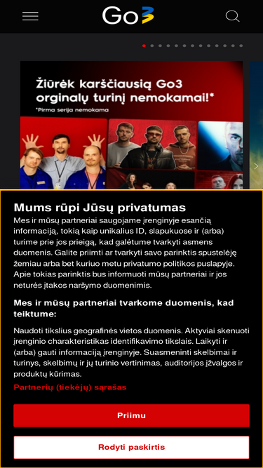 73%mėgaukitės naujausiais lietuviškais ir užsienio filmais, serialais, sporto transliacijomis ir tv. go3 televizija - jūsų telefone, tv ar kompiuteryje.gaukitės naujausiais lietuviškais ir užsienio filmais, serialais, sporto transliacijomis ir televizija internetu. go3 - jūsų telefone, tv ar kompiuteryje.