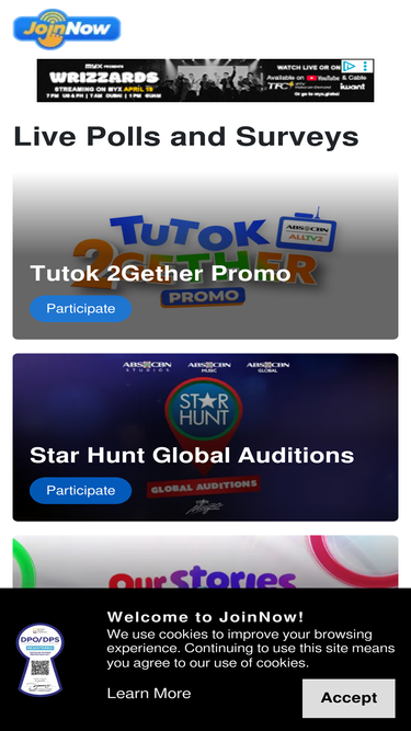 86%Answer live polls and surveys from your favorite ABS-CBN programs and online shows here at JoinNow.ph