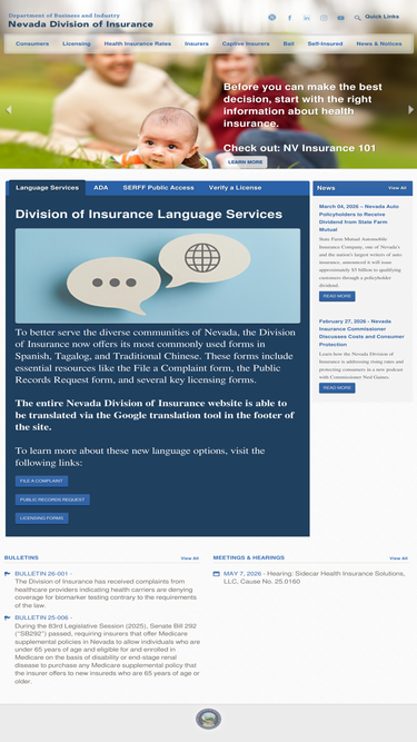 the insurance division is charged with protecting the rights of the consumer and the public’s interest in dealing with the insurance industry and is responsible for regulating the insurance industry. it sets ethical and financial standards for insurance companies and review rates. the division responds to and assists consumers. it reviews insurance policies to ensure compliance with nevada insurance laws and regulations.