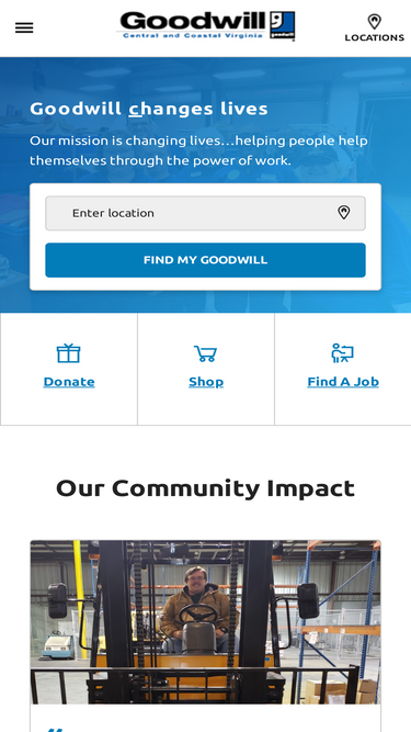 Goodwill is a non profit changing lives in VA. Our mission is helping people help themselves... changing lives through the power of work