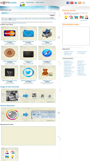 81%free icon sets. the catalog allows users to download icon sets free of charge (at least for personal use) and renders additional icon-related services, such as favicon generator, image to icon converter.