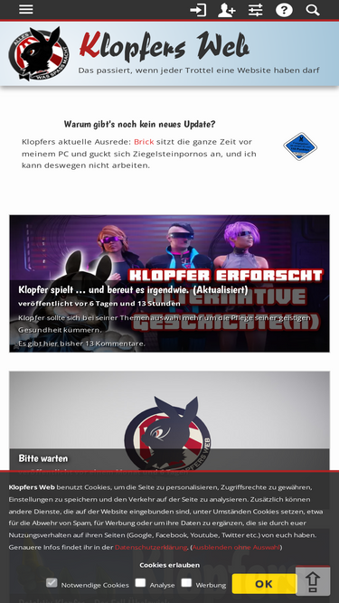 75%Hier kann man Klopfers Bücher direkt (mit Autogramm) beim Autor bestellen: 'Böses Hasi', 'Mein Weg zur Weltherrschaft', 'Sexpanzer und Babytod', 'Braindead...