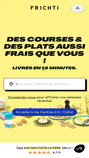 Frichti, c’est la pause-déj' qui régale au bureau et à la maison avec une livraison ultra rapide en 15 min à Paris et en petite couronne mais aussi dans le reste de l'Île-de-France en quelques heures! Frais, rapide et toujours délicieux !