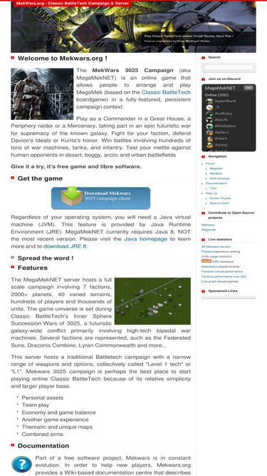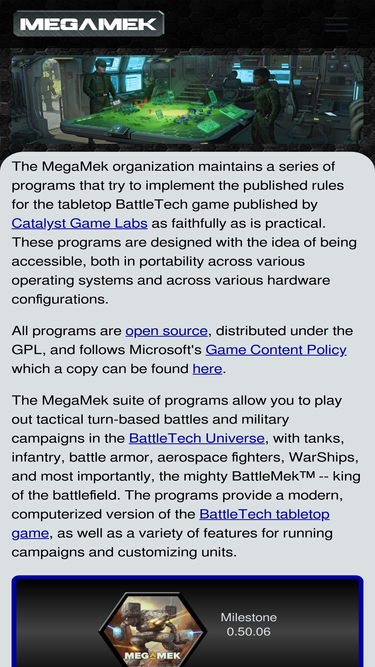 60%megamek is an unofficial, online version of the classic battletech board game. megamek is open source, free software. it is licenced under the gpl.