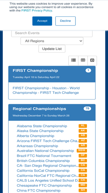 official source of event information, results and webcasts from the first first tech challenge