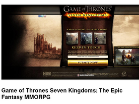 game of thrones seven kingdoms, the brand new fantasy mmorpg, based on the massive hit hbo tv series game of thrones, is coming soon to your browser. join the battle for westeros, and pledge allegiance to the stark, lannister or baratheon houses to conquer your enemies. will you be a loyal servant and footsoldier to the realm or will you deceive and betray for your personal gain in the upcoming epic fantasy mmorpg, game of thrones. coming soon to your browser.