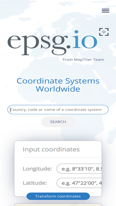 65%EPSG.io: Coordinate systems worldwide (EPSG/ESRI), preview location on a map, get transformation, WKT, OGC GML, Proj.4. https://EPSG.io/ made by @klokantech