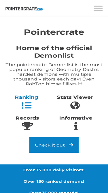 100%pointercrate is the home of the original demonlist, a ranking of the hardest rated demons maintained by some of the game's most skilled players