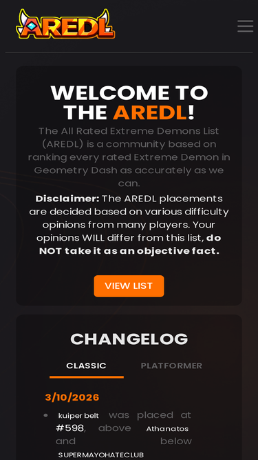 75%The All Rated Extreme Demons List (AREDL) is a community based on ranking every rated Extreme Demon in Geometry Dash as accurately as we can.