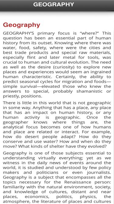 57%geography's primary focus is "where?" this question has been an essential part of human history from its outset. knowing where there was water, food, safety,