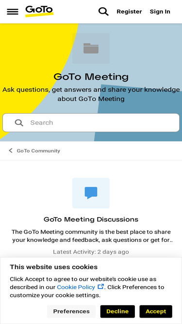 87%The GoTo Community is a community where members are able to ask and answer questions about GoTo products. It is a great place to learn and connect with other knowledgeable GoTo customers and get help using GoTo products.